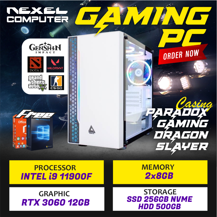 PC Gaming Intel RGB - INTEL i9-11900F - RTX 3060 12GB - 16GB RAM - SSD 256GB NVMe + HDD 500GB