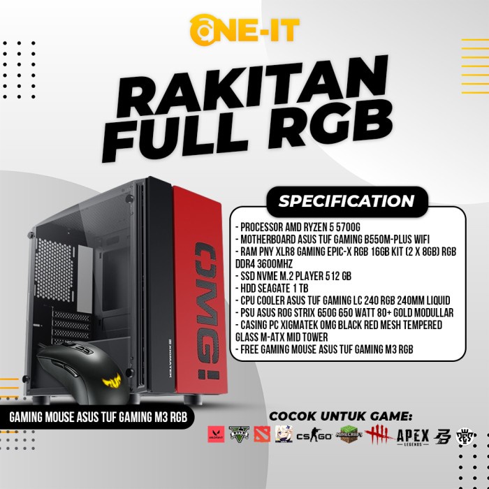 PC RAKITAN RYZEN 5 5700G | RAM 16 GB | SSD 512 GB | FREE ASUS TUF M3