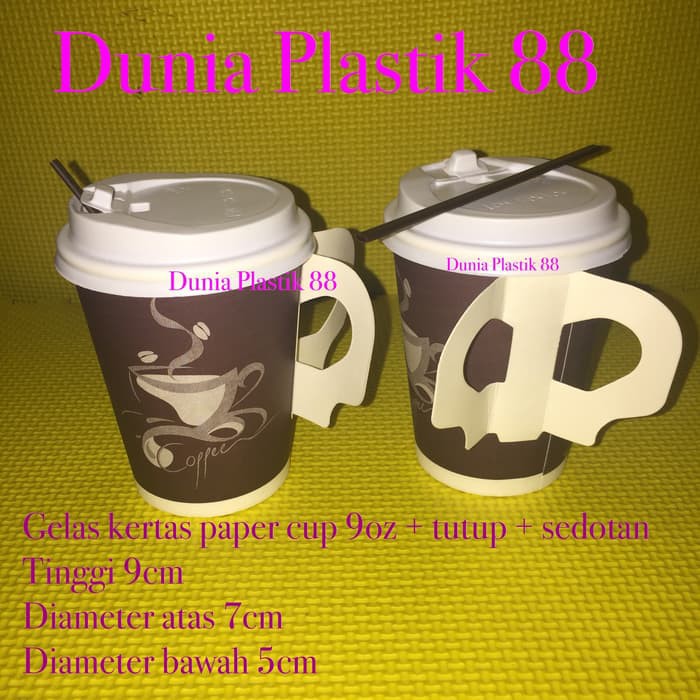 PC gelas kertas PAPER CUP handle GAGANG pegangan 9oz COMPLIT S T DP