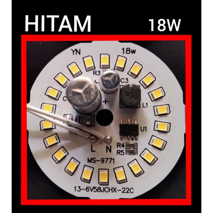 PCB LED AC 18W HITAM D-57MM