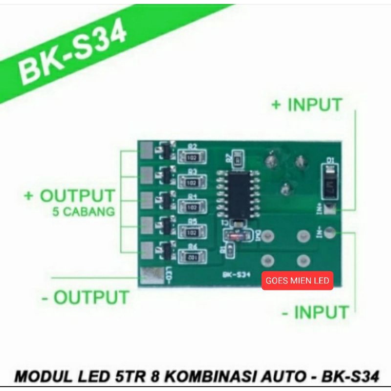 PCB bk-s34 modul led kedip 5 jalur DC 12V 24V