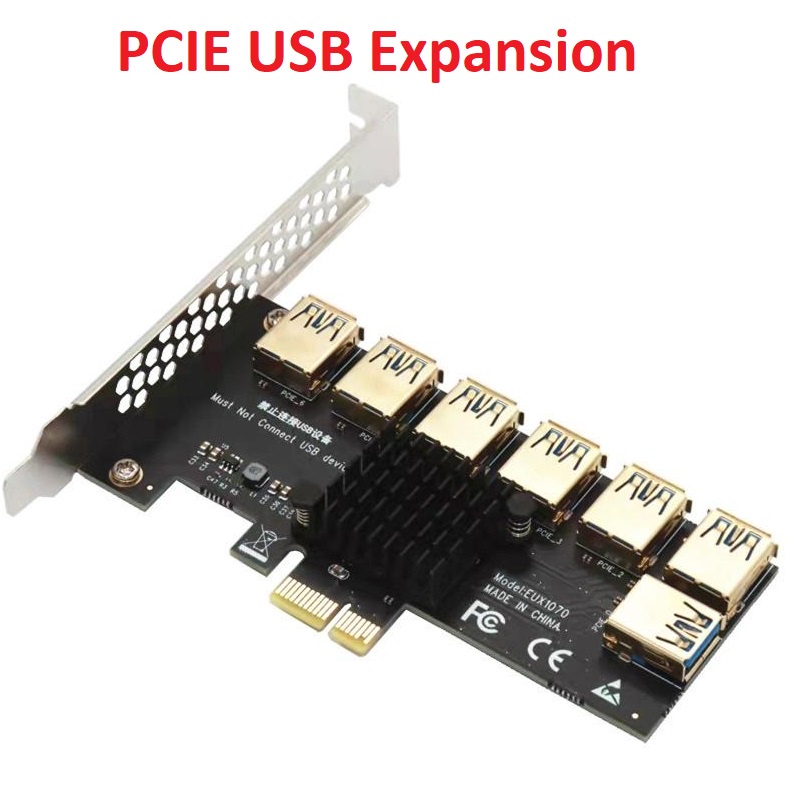 PCIE Expansion Card 7 Port USB 3.0 Riser Mining VGA Extender