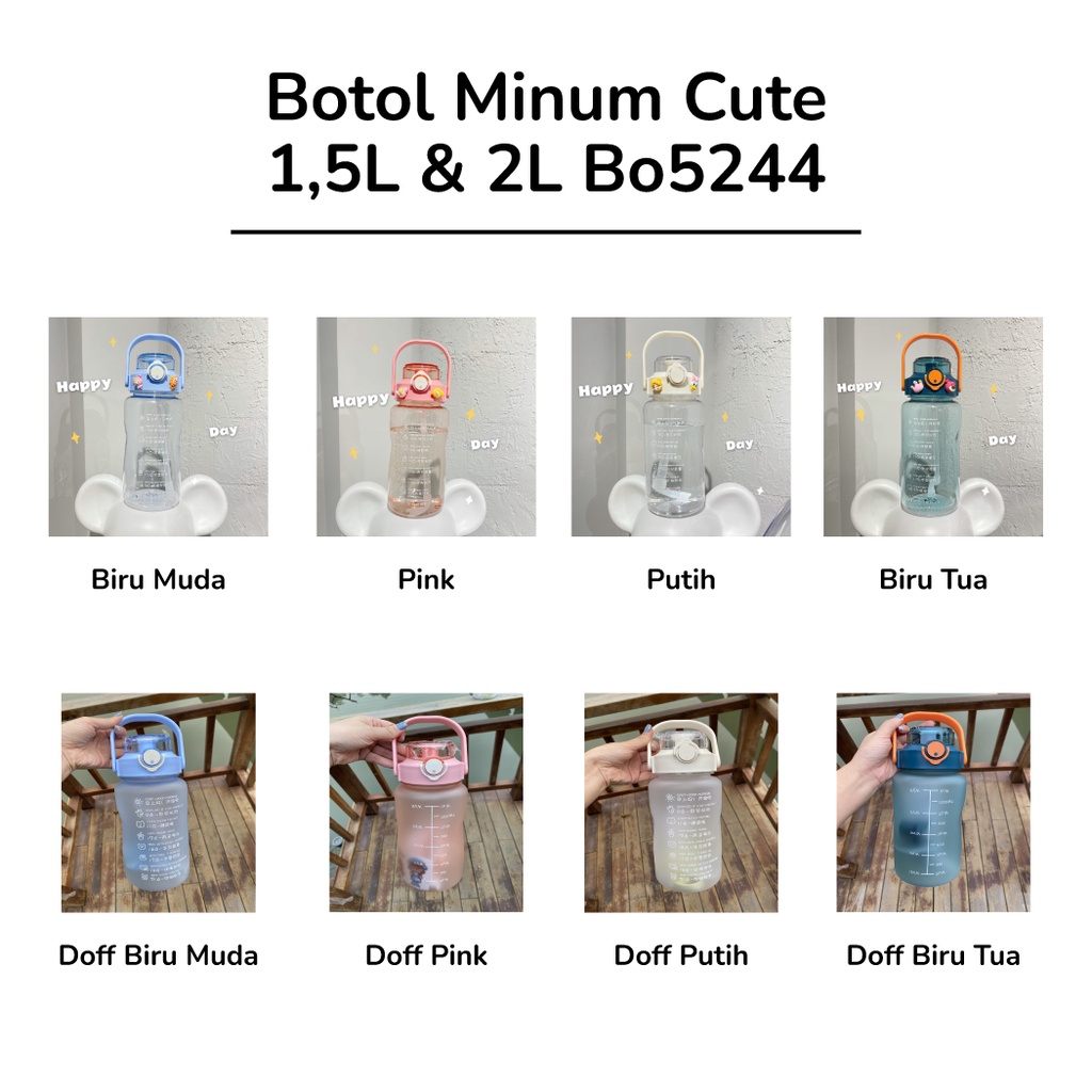 PEACH Bo5244 Botol Minum Cute 1,5 L & 2 L + Stiker / Botol Minum Stiker Lucu & Unik / Botol Minum 1500 ML & 2000 ML