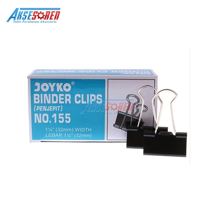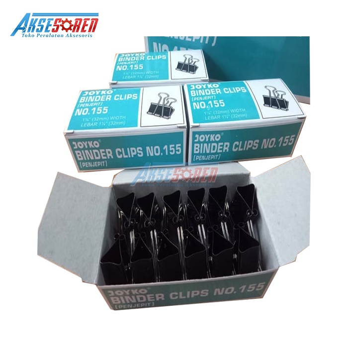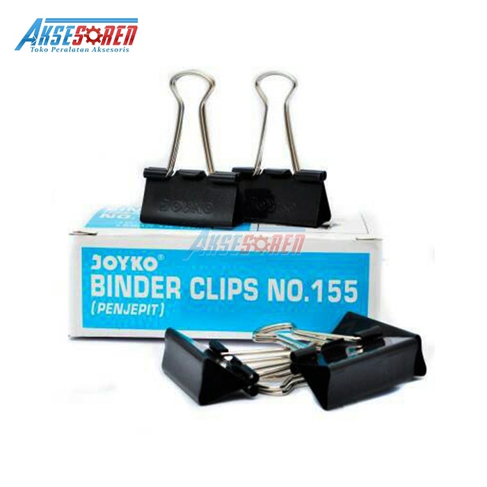 PENJEPIT KERTAS KLIP JOYKO NO 155 [1 BOX/12 PCS] / BINDER CLIPS / PAPER CLIP / JEPIT LEMBARAN KERTAS / ALAT PENJEPIT MAKAH / JEPITAN KERTAS HITAM JOYKO UKURAN SEDANG