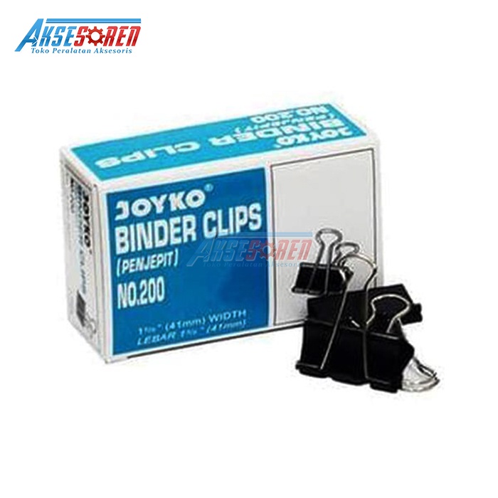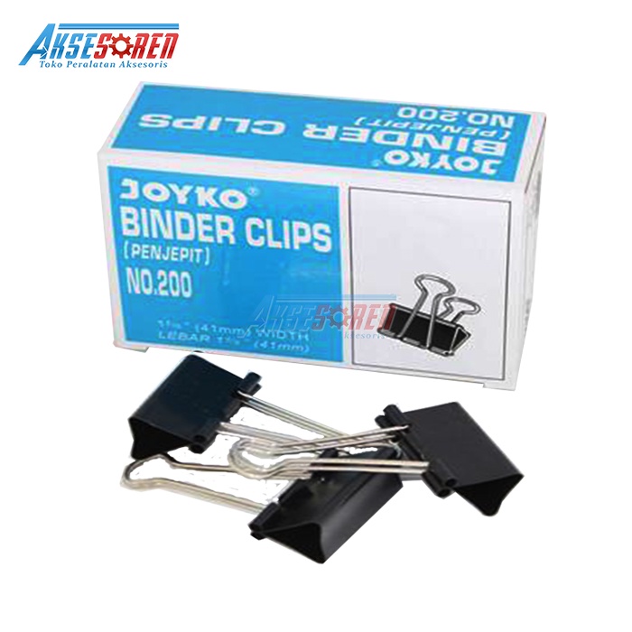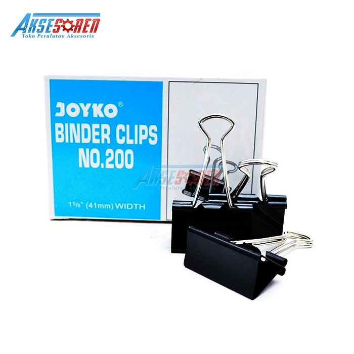 PENJEPIT KERTAS KLIP JOYKO NO 200 [1 BOX/12 PCS] / BINDER CLIPS / PAPER CLIP / JEPIT LEMBARAN KERTAS / JEPITAN KERTAS WARNA HITAM BESAR / ALAT PENJEPIT MAKALAH JOYKO