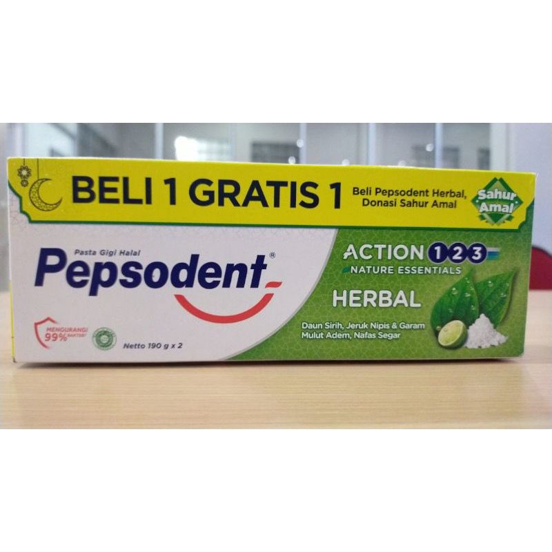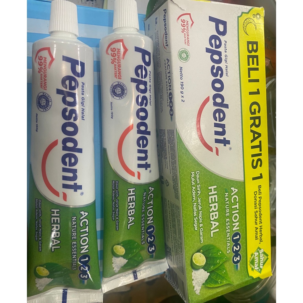 PEPSODENT PASTA GIGI HALAL / PEPSODENT HERBAL 190g BELI 1 GRATIS 1 ( BANDED ) ( warna hijau )