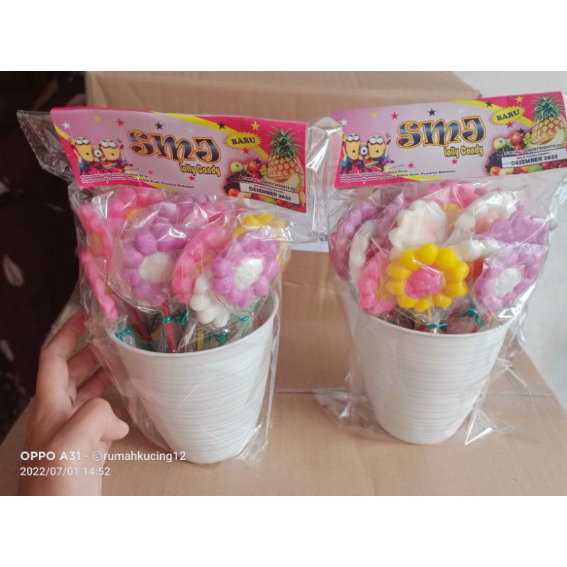 PERMEN LOLLIPOP BUNGA 20PCS FREE POT