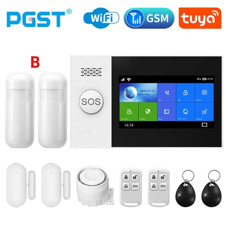 PGST PG107 Tuya Alarm System 4.3 inch Screen WIFI GSM GPRS Burglar Home Security With PIR Motion Sensor Fire Smoke Detector