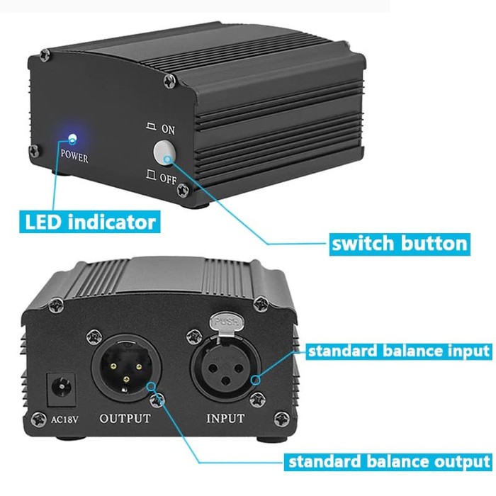 PHANTOM POWER SUPPLY 48V XLR CONDENSER MIC Audio KARAOKE PENGUAT MICROPHONE Amplifier