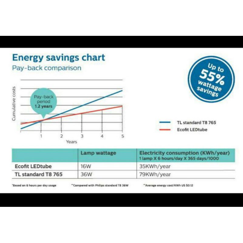 PHILIPS LED TUBE ECOFIT 600mm 8W 765 T8 LED 8WATT
