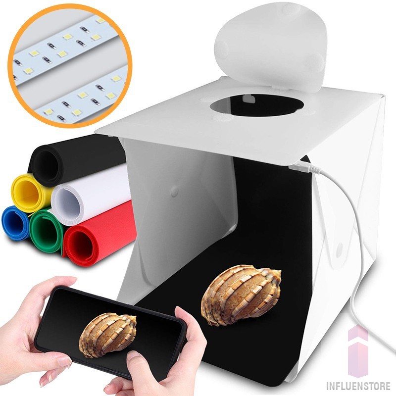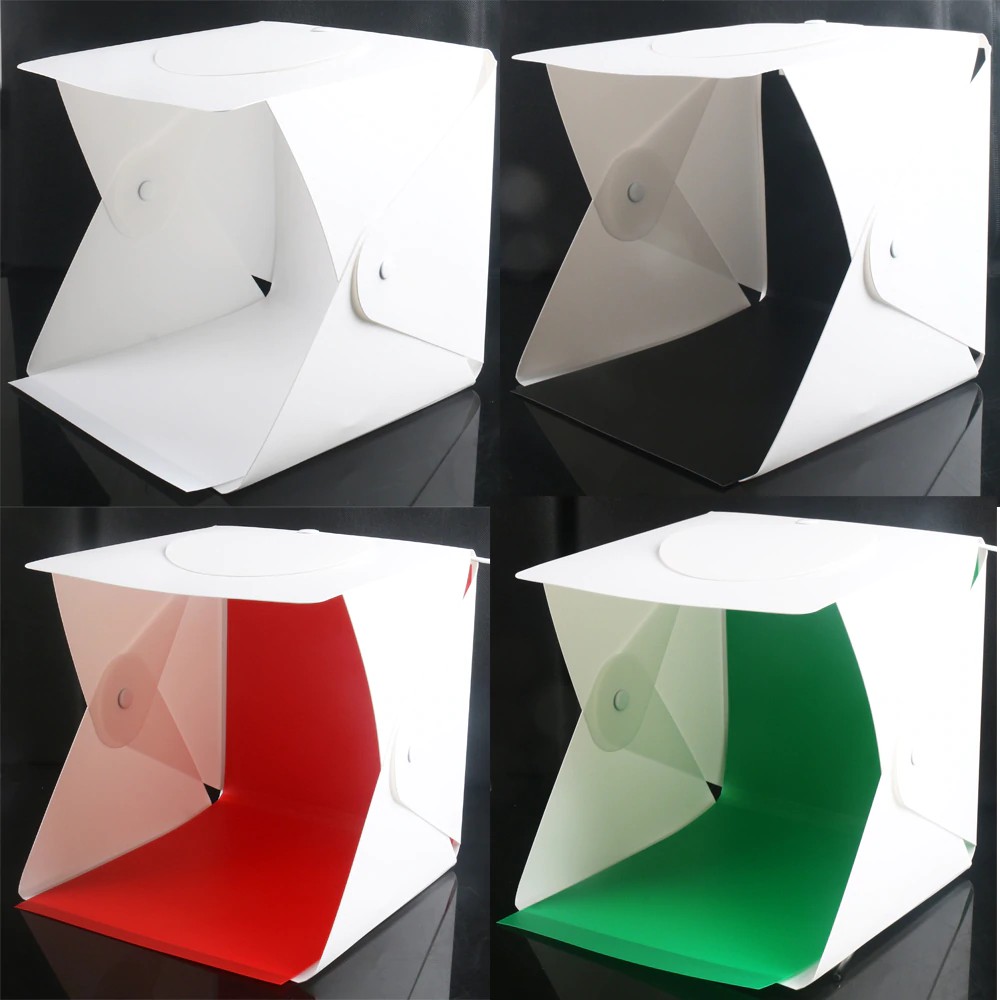 PHOTO STUDIO portable Light Box Kotak Mini foto produk LED Lipat Folding S M L 4 PCS Background