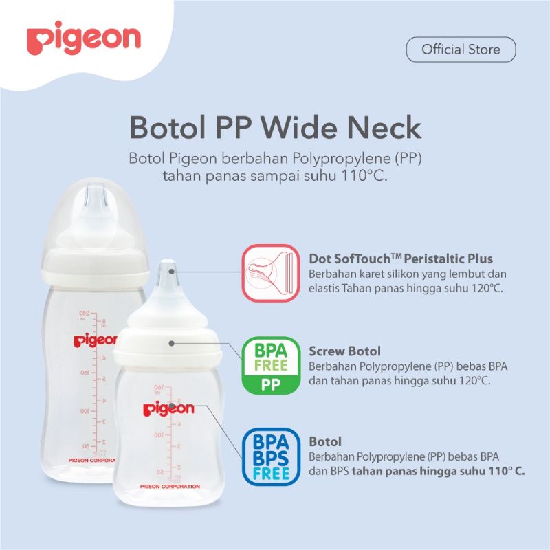 PIGEON Botol Pp Wide Neck 160Ml With Peristaltic Plus Nipple/Botol Dot Susu