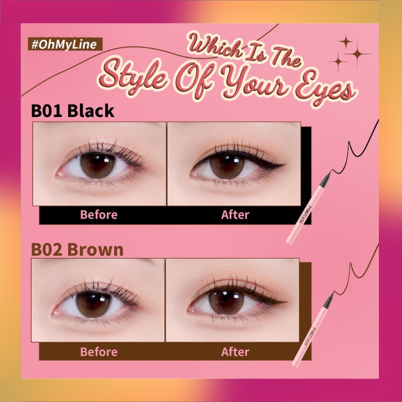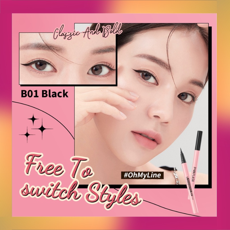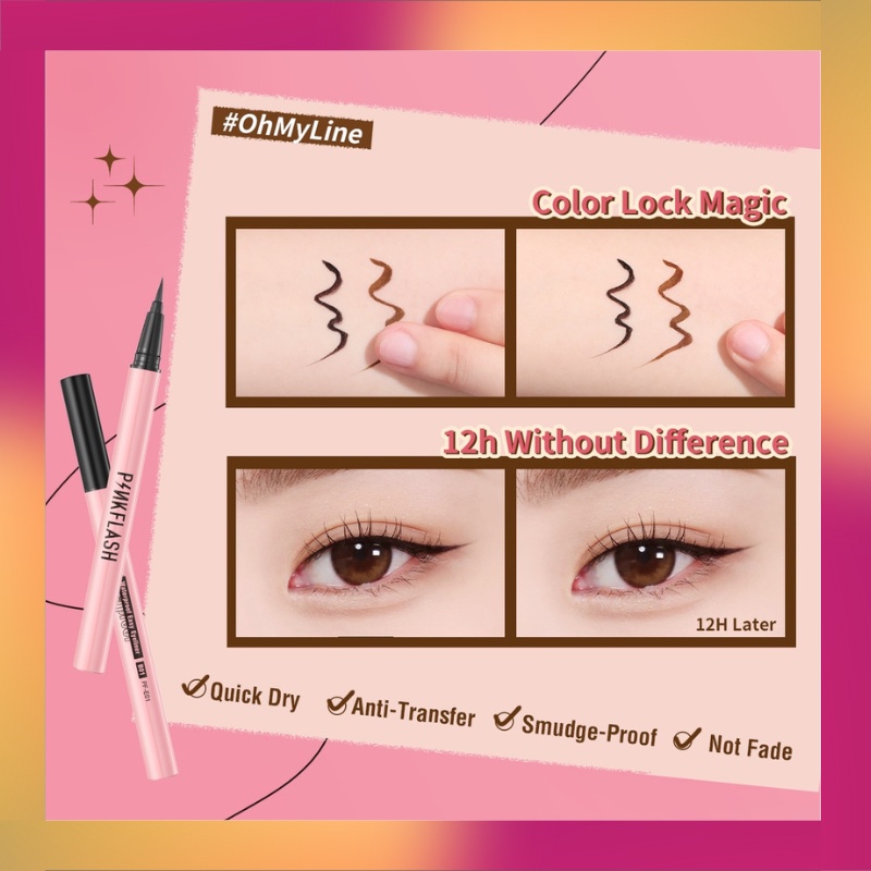 PINKFLASH Waterproof Easy Eyeliner Pen Black PF-E01 | Eye Liner Hitam & Coklat | Pink Flash Smoodgeproof | BPOM