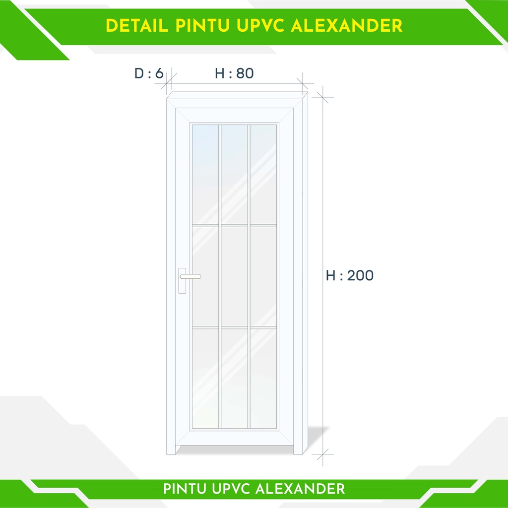 PINTU PANEL UPVC PINTU KAMAR PINTU RUANG KERJA FULL KACA REGAL 80X200 CM PINTU MINIMALIS
