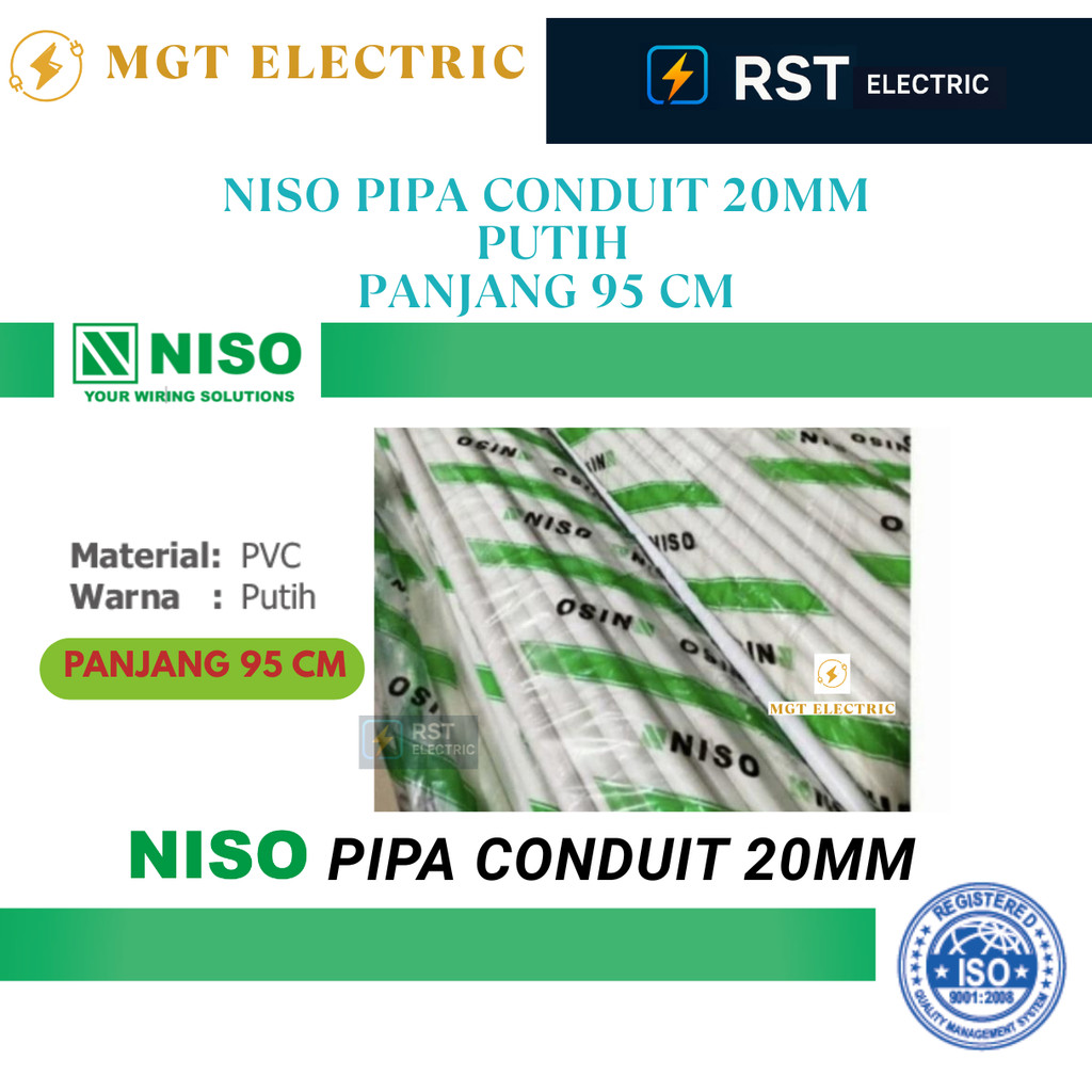 PIPA CONDUIT NISO PVC 20MM CONDUIT PIPE PVC 20 MM konduit - Putih