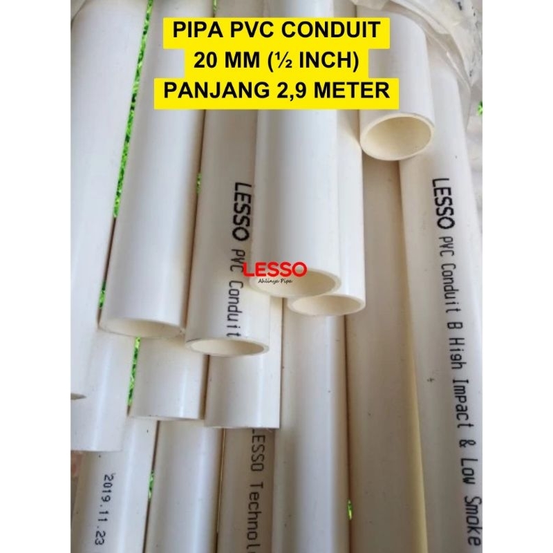 PIPA PVC CONDUIT 20mm (1/2inch) Merek Lesso/Pipa Listrik Panjang 2,9m