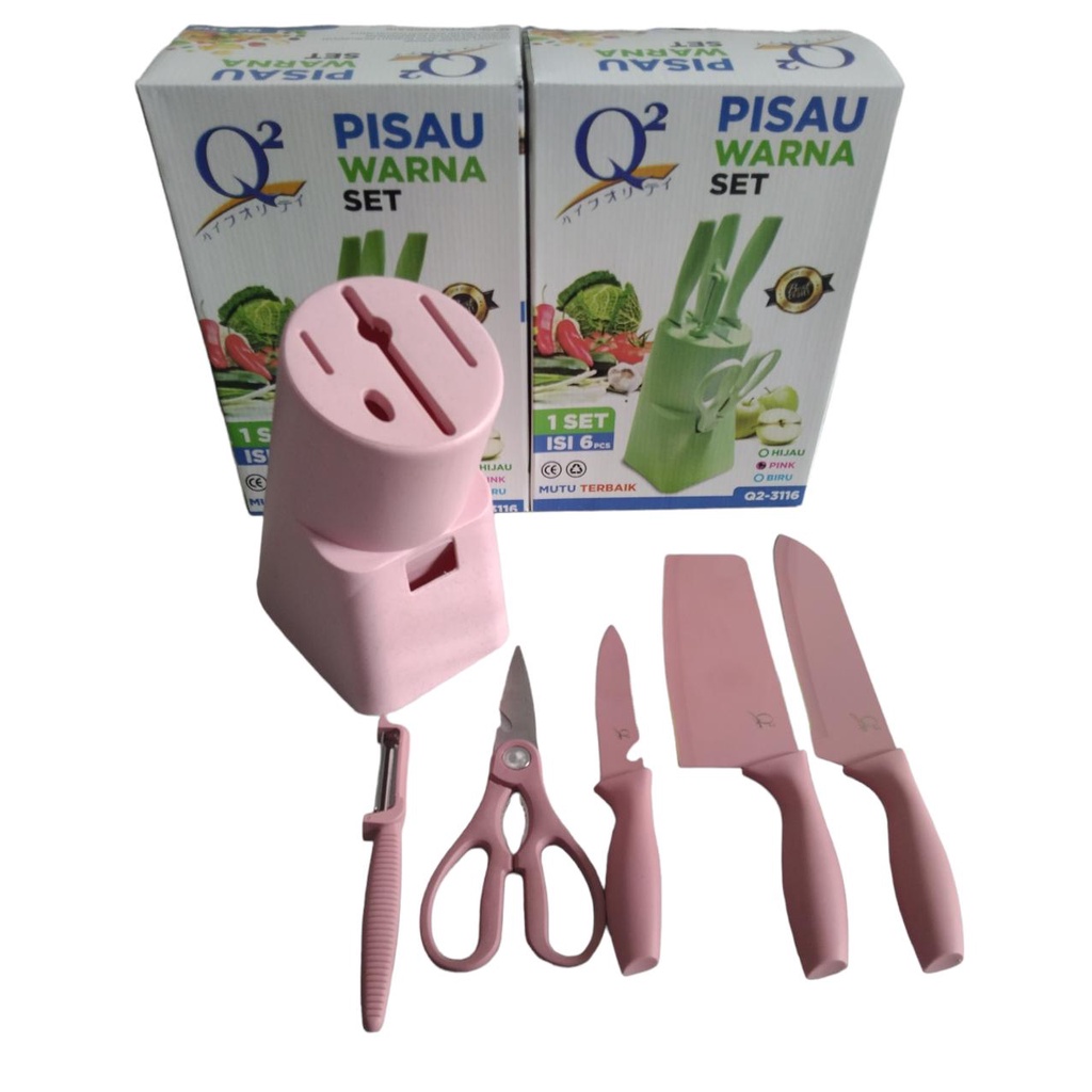PISAU SET Q2-3116 / PISAU WARNA SET ISI 6PCS Q2-3116 / PISAU SET 5 IN1 / KNIFE SET 6IN1 DENGAN WADAH / PISAU SET DAPUR / PISAU SET Q2 MURAH / PISAU JERAMI GANDUM / PISAU Q2-3116 MURAH / KNIFE SET ANTI LENGKET