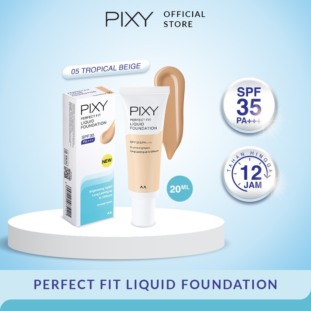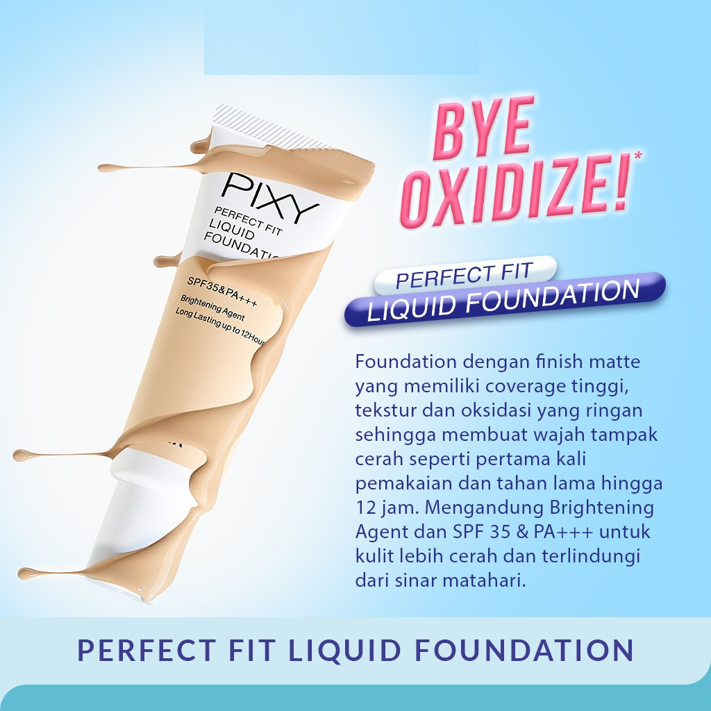 PIXY Perfect Fit Liquid Foundation SPF 35 PA+++ 20ml / Brightening Agent / Long Lasting Up to 12 jam