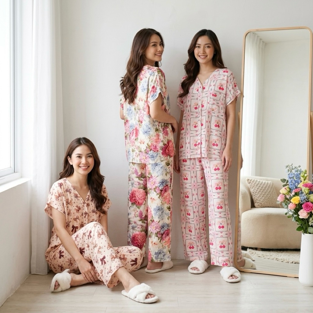 PIYAMA KANCING BUSUI | PIYAMA RAYON V-NECK | PIYAMA BUSUI | BAJU TIDUR MURAH