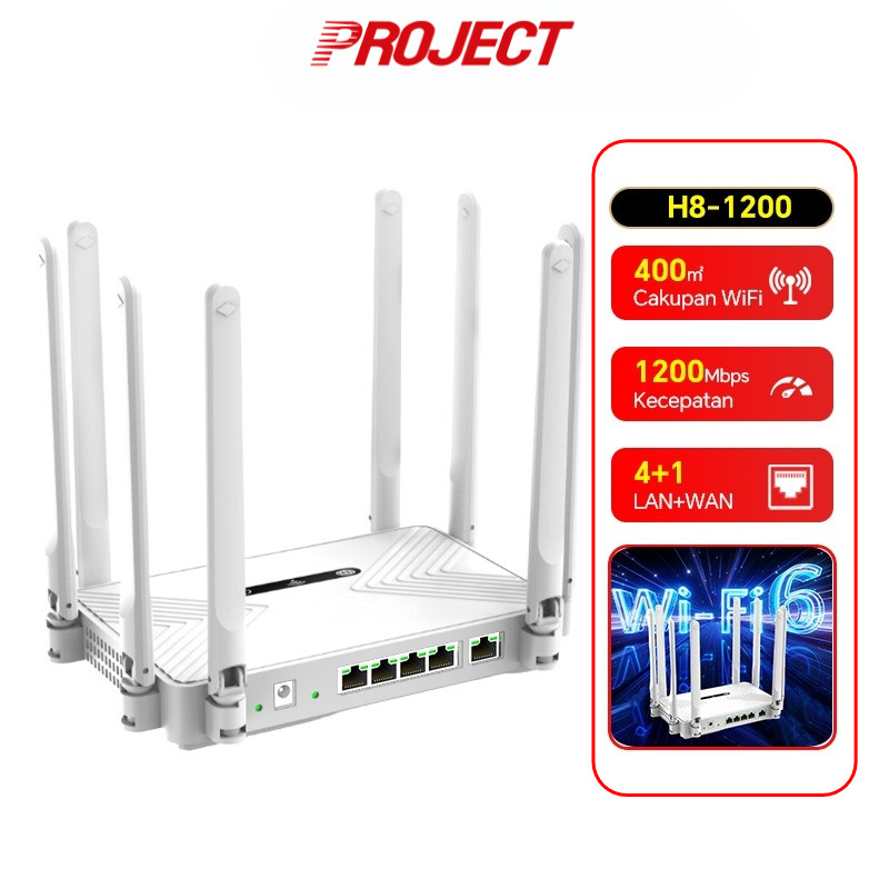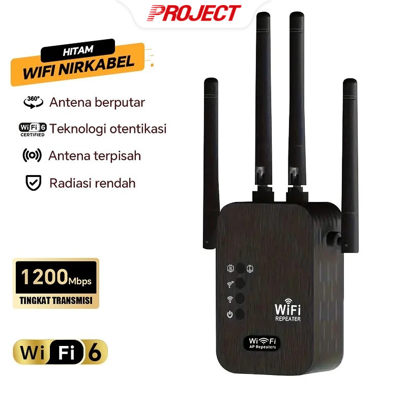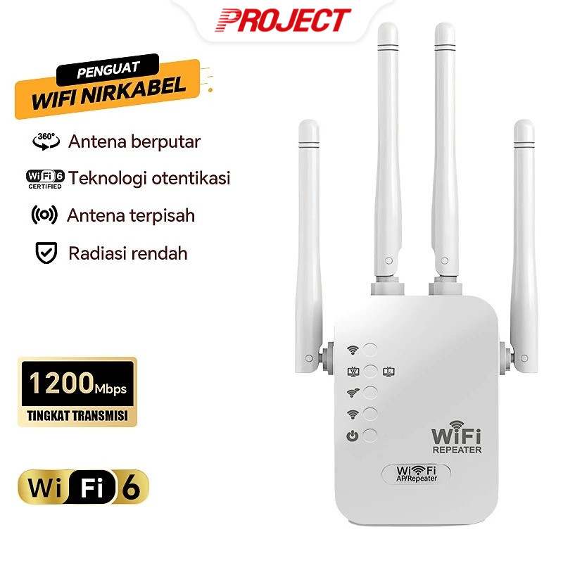 PJT Wifi Repeater 1200Mbps 2.4GHz 4/6 Antena Penguat Sinyal WiFi Booster Tembus Tembok 2 Port LAN Tanpa Lag Cocok Rumah Besar & Kantor