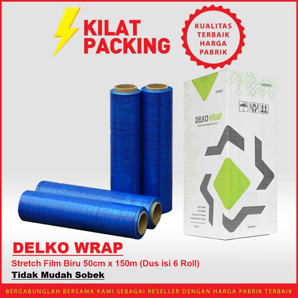 PLASTIK WRAP - STRETCH FILM BIRU - DELKOWRAP - 50CM X 150M DUS EKSPEDISI / KARGO