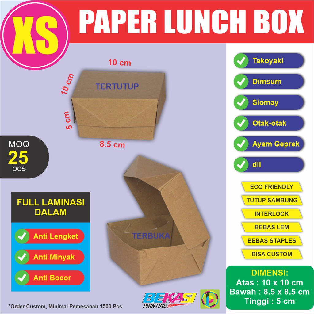 PLC-XS Paper Lunch Box Kraft / Dus Takoyaki Siomay Dimsum / Take Away Uk Extra Small / XS 10x10x5 cm