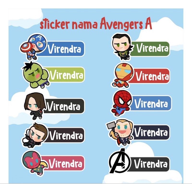 PO 3 hari (Bentuk Kotak) Stiker Sticker Nama Anak Avengers untuk di tempel di buku tulis atau buku paket iron man spiderman captain America thor hulk