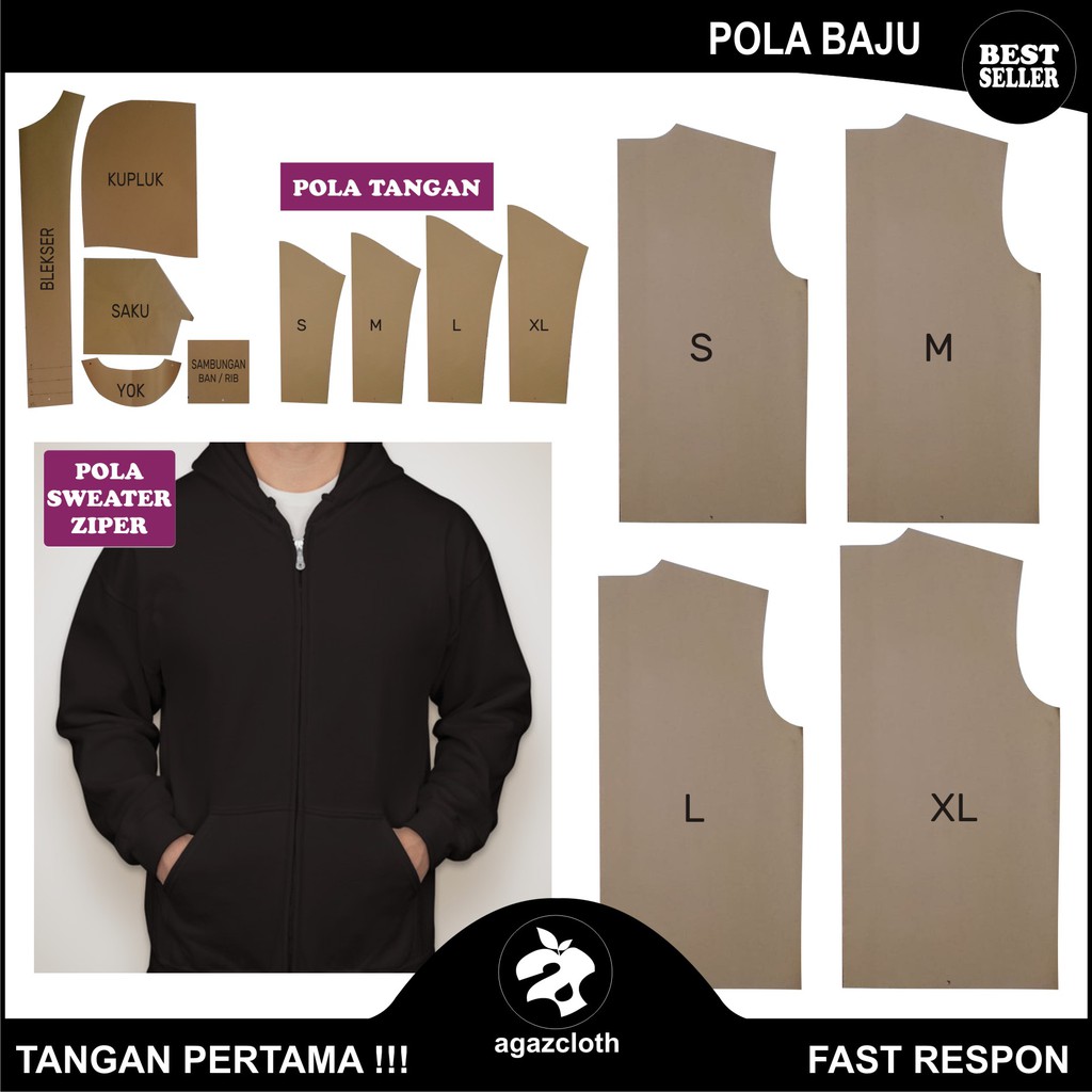 POLA SWEATER ZIPPER pola baju pakaian patrun mal sweater