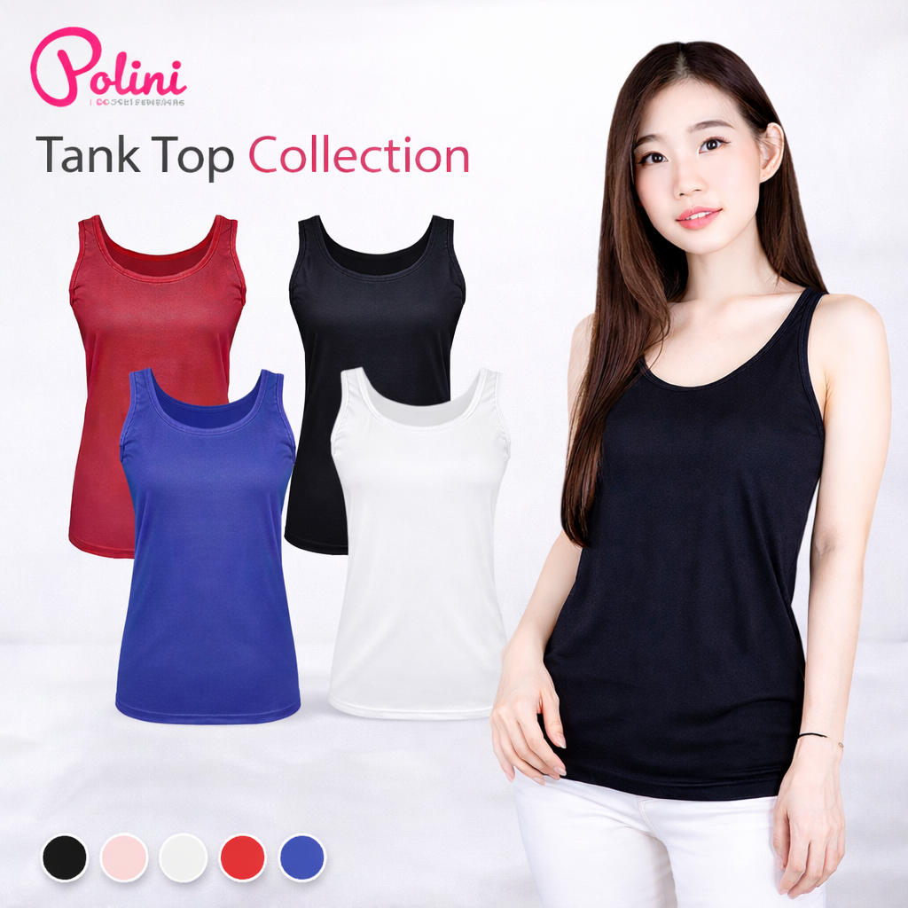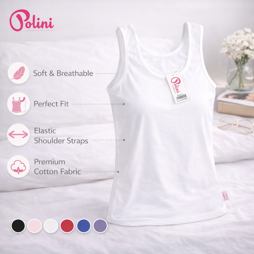 POLINI Tanktop Wanita Bahan Katun Atasan Singlet Wanita Tali Besar