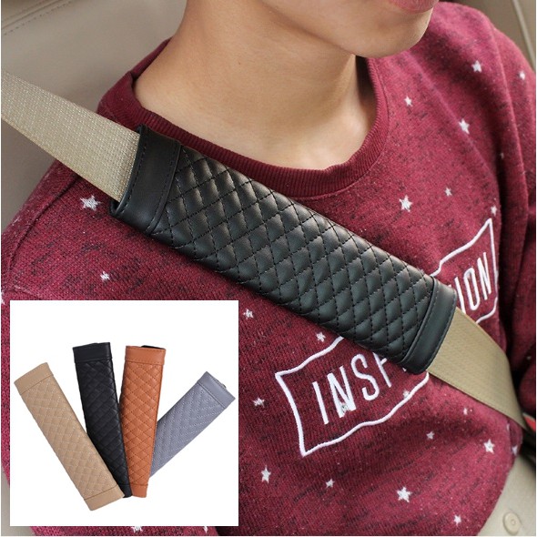 POLOS SINGLE TONE MOTIF SILANG Sarung Cover Safety Belt Sabuk Pengaman Kulit Sintentis 1set/pasang