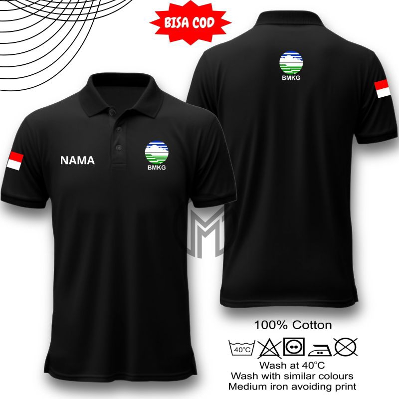 POLOSHIRT BERKERAH BMKG - LOGO KECIL - FREE NAMA - Baju Berkerah BMKG/Badan Meteorologi, Klimatologi, dan Geofisika Free Nama - MMJ