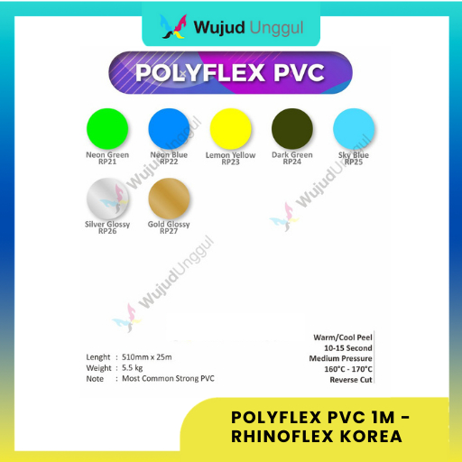 POLYFLEX PVC 1M - RHINOFLEX KOREAI Bahan Cutting Sticker & Sablon Kaos, Vinyl Cutting untuk Sablon & DIY Custom