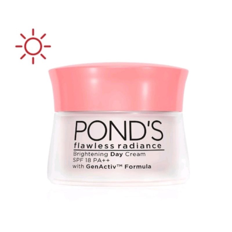 Krim siang bebas minyak yang diperkaya Formula GenActivTM baru dan SPF 18PA++. Kemampuannya untuk beradaptasi dengan setiap jenis kulit dapat memudarkan noda hitam dan mencerahkan kulit dari dalam. Terobosan dari Pond's flawless white yang bekerja sampai ke dalam untuk menhambat produksi melanin. Membantu membuat wajah tampak lebih putih, menyamarkan noda hitam dan membuat wajah anda terlihat bercahaya.