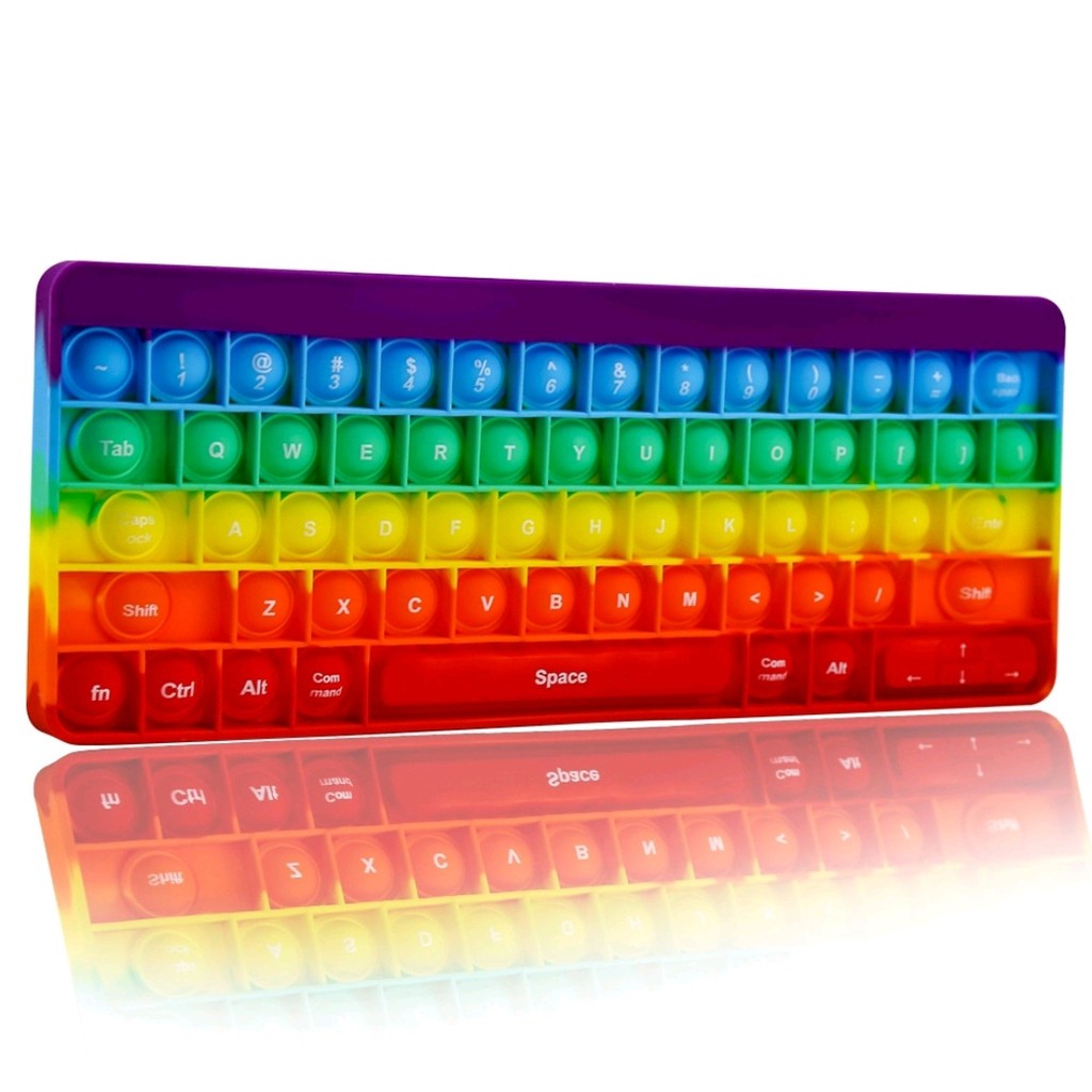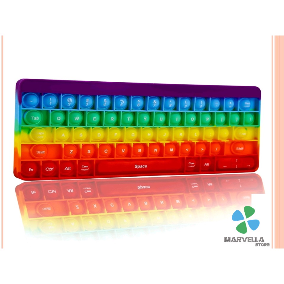 POP IT KEYBOARD RAINBOW TOYS MAINAN SQUISHY MOTIF KEYBOR PELANGI MAINAN TERBARU TAHUN 2021 DENGAN ALPHABET QWERTY