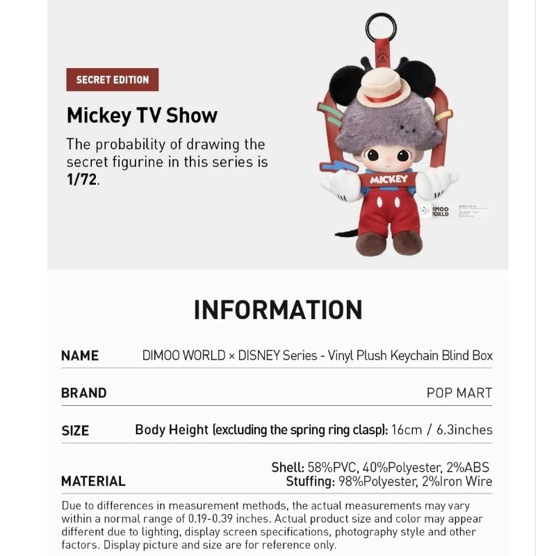 POP MART DIMOO WORLD x DISNEY Series - Vinyl Plush Keychain Blind Box Action Figuer Mystery Box - SECRET EDITION