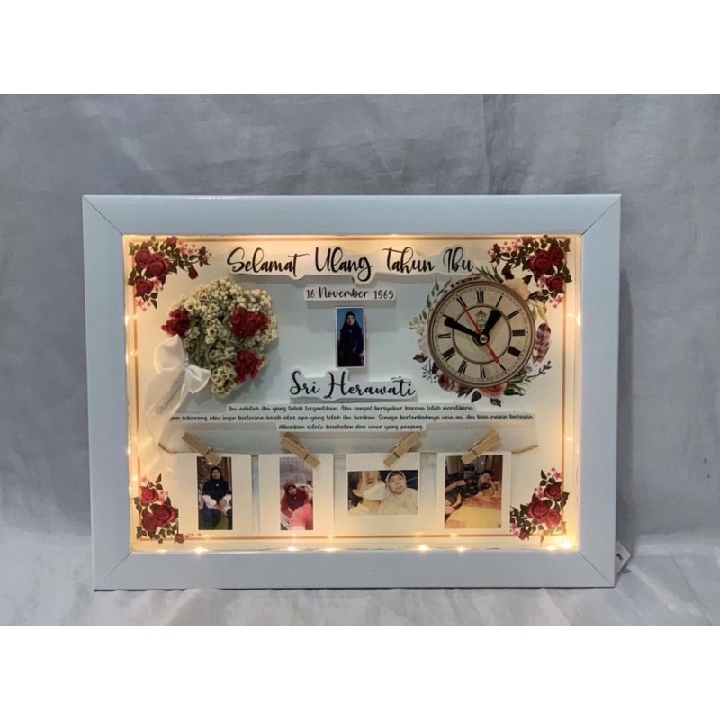 POP UP FRAME BUKET JAM BESAR flower in frame Wedding pernikahan ultah anniversary wisuda