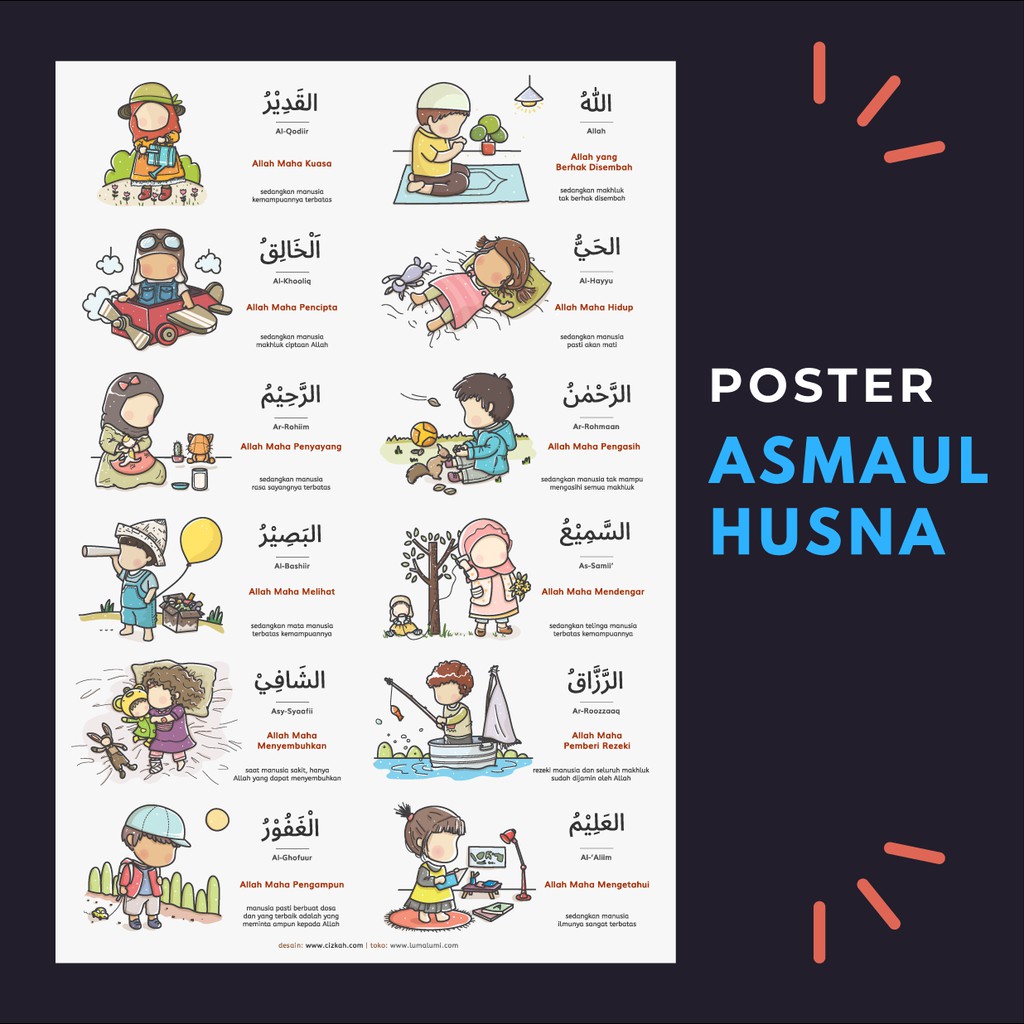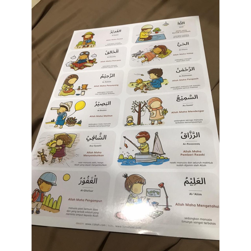 POSTER ASMAUL HUSNA UKURA A3 FACELESS | MAINAN EDUKASI ANAK MUSLIM AESTHETIC BERKUALITAS