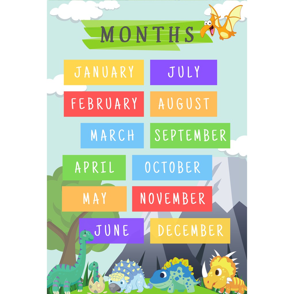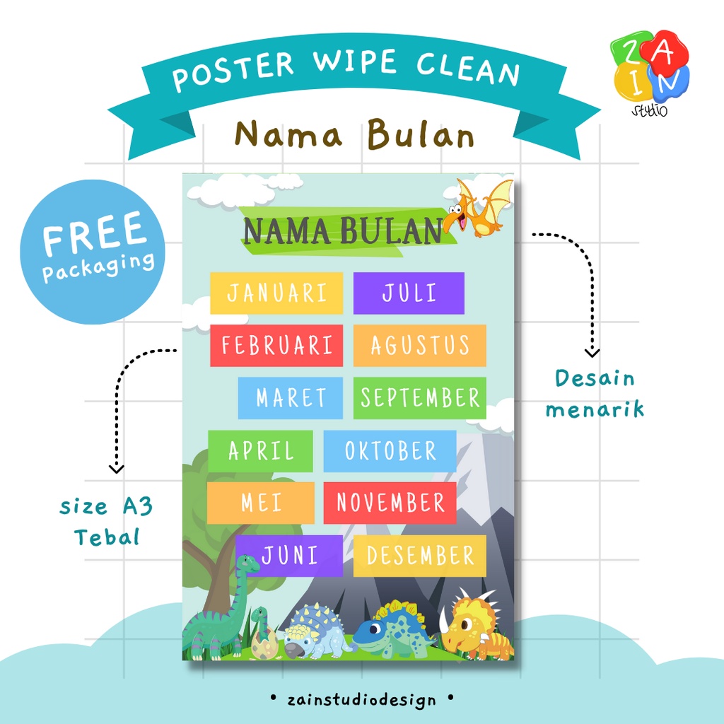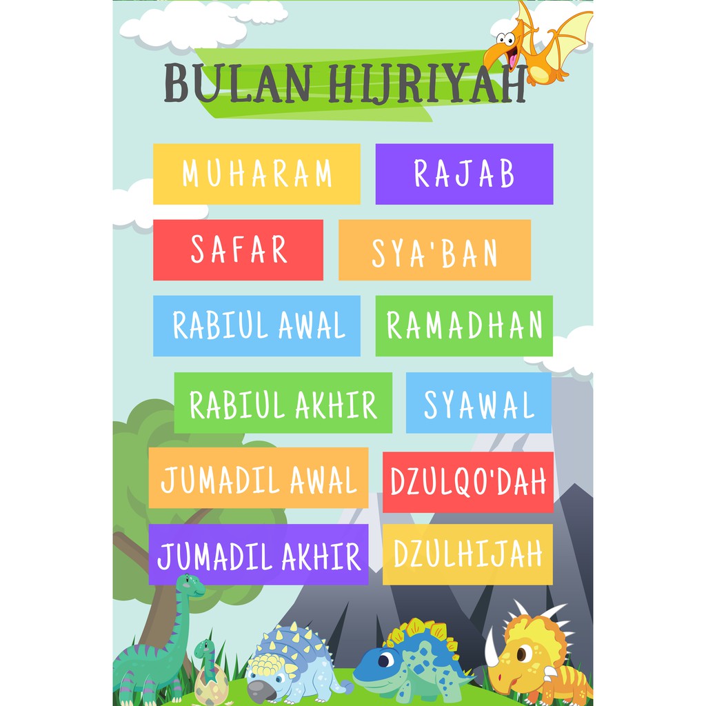 POSTER BELAJAR NAMA BULAN UNTUK BALITA TK PAUD (B.ING - B.INDO - BULAN HIJRIYAH)