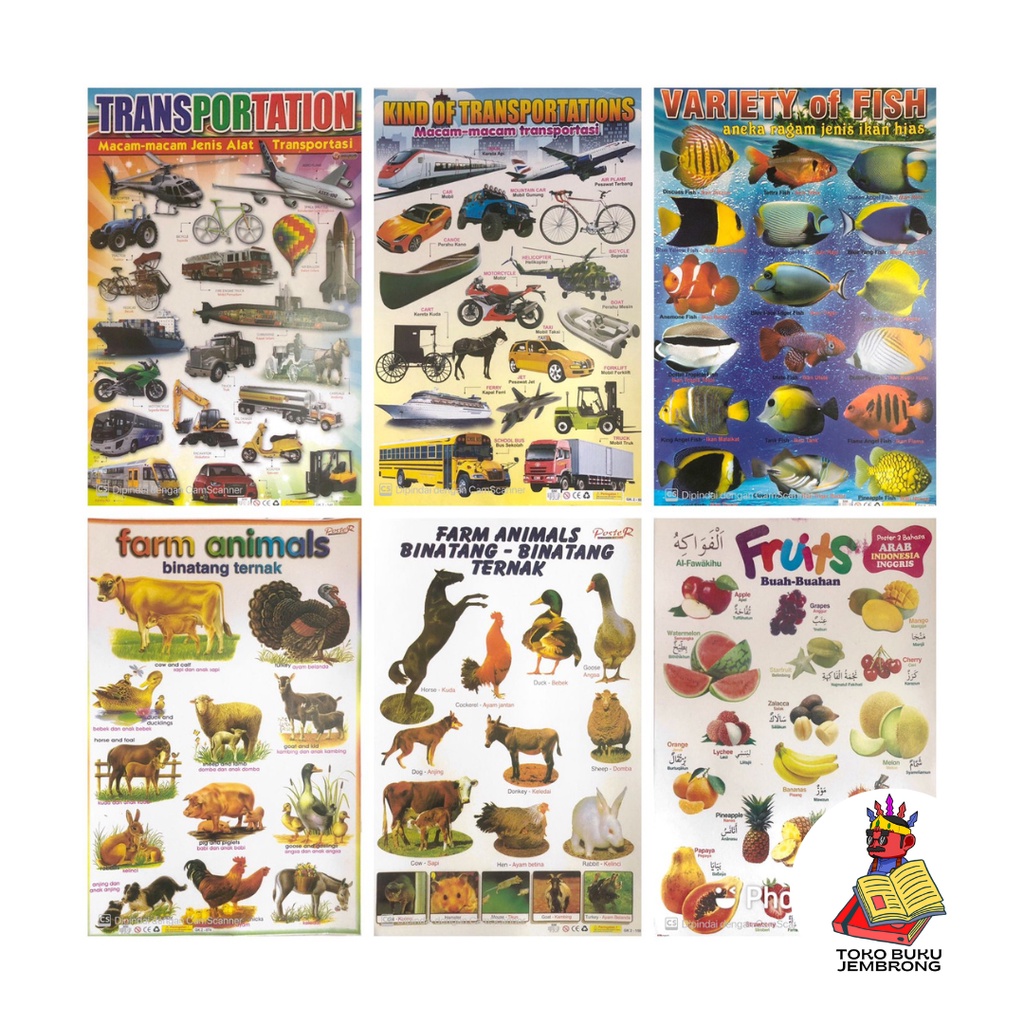 POSTER BUAH BUAHAN POSTER NAMA BINATANG POSTER SAYURAN POSTER TRANSPORTASI POSTER NAMA IKAN POSTER MURAH POSTER DINDING