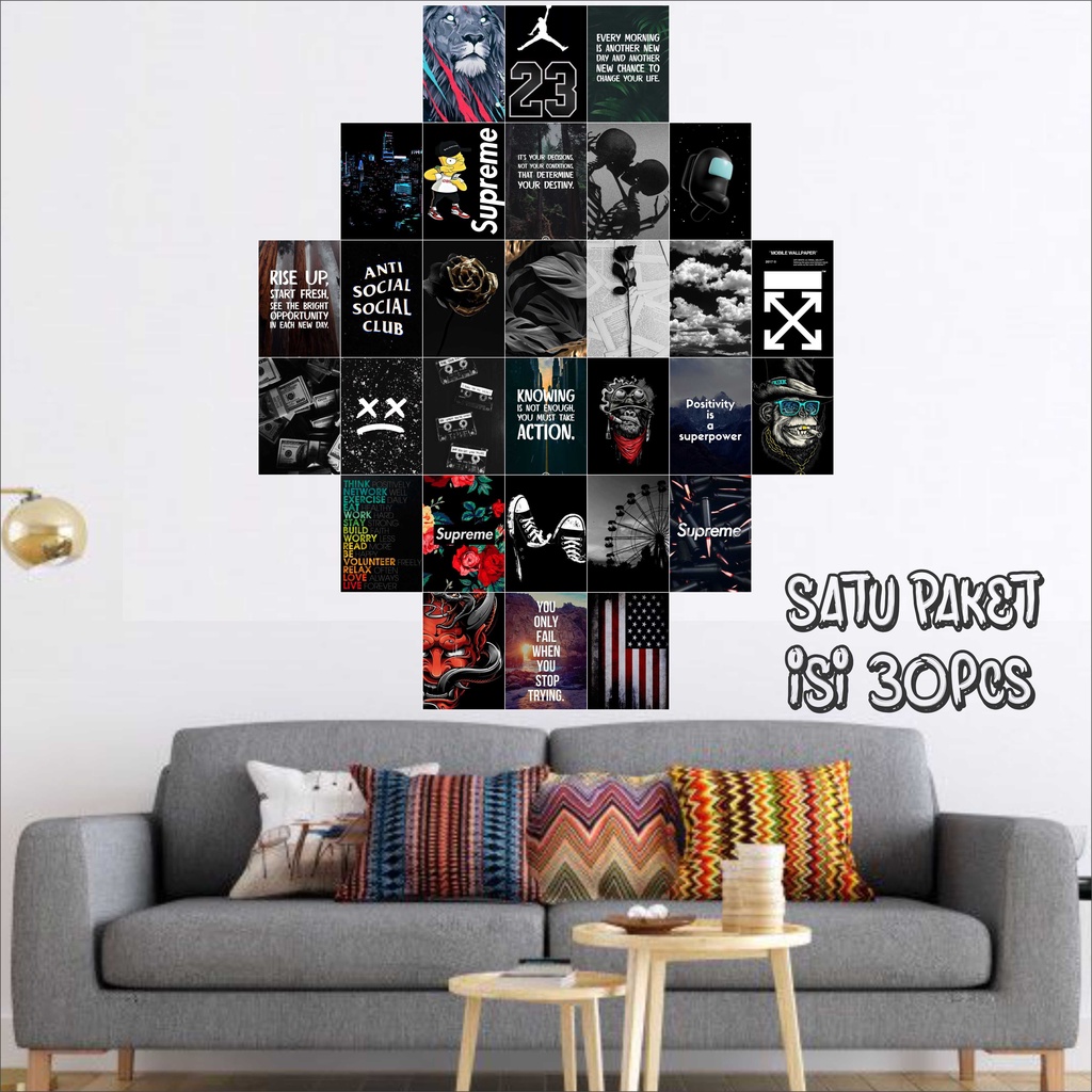 POSTER DINDING AESTHETIC BLACK isi 32pcs /POSTER DINDING RUMAH /DEKORASI KAMAR
