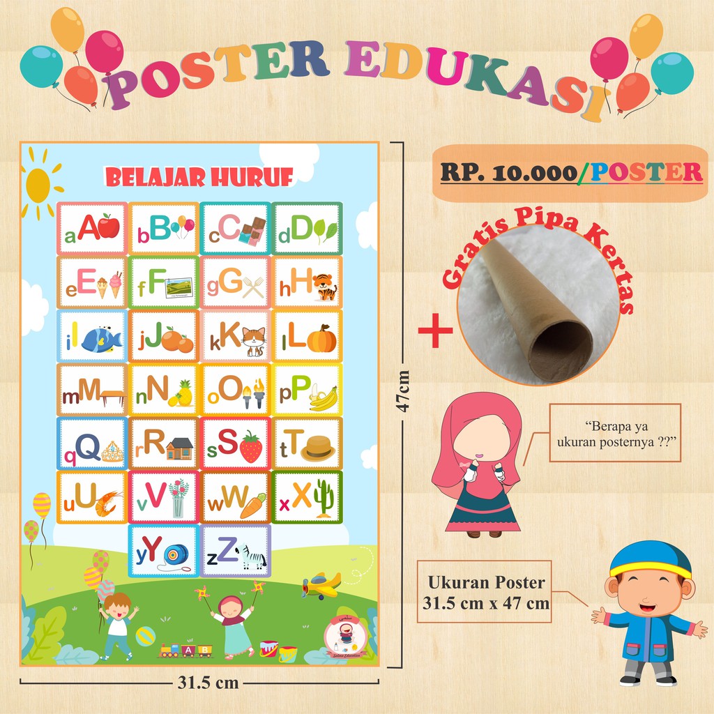POSTER EDUKASI ANAK BALITA POSBEL MENGENAL HURUF ALFABET ABJAD ALPHABET POSTER PENDIDIKAN ANAK PAUD