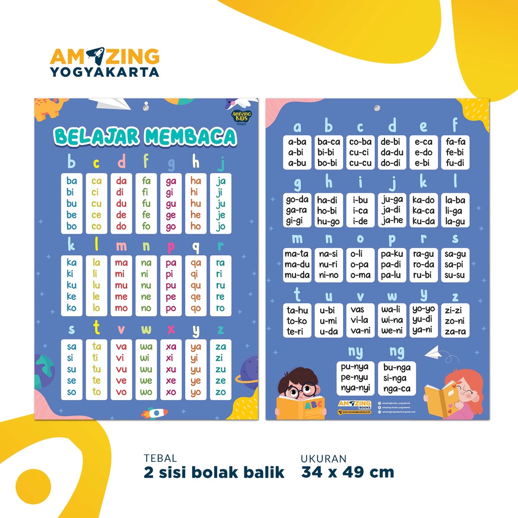 POSTER EDUKASI ANAK - Belajar Membaca ( 2 in 1 )
