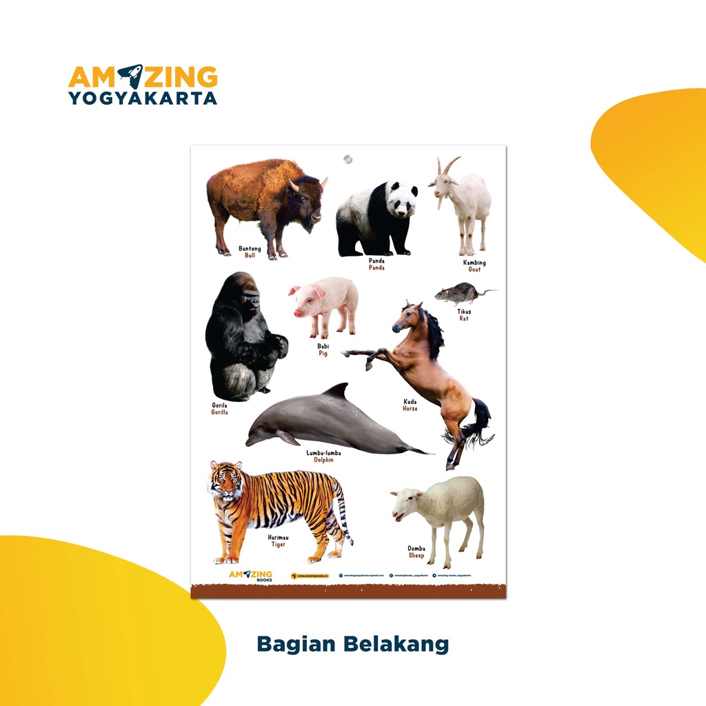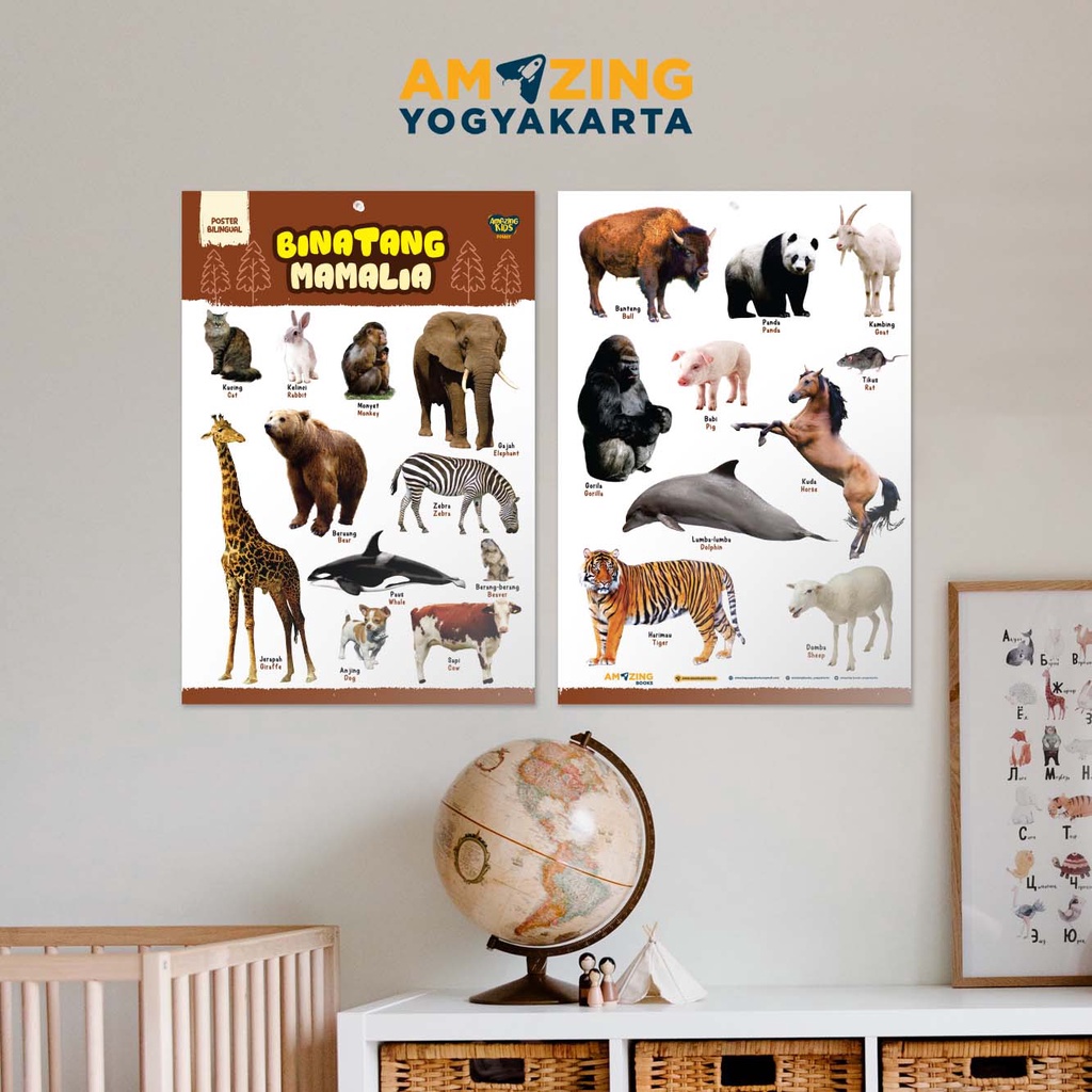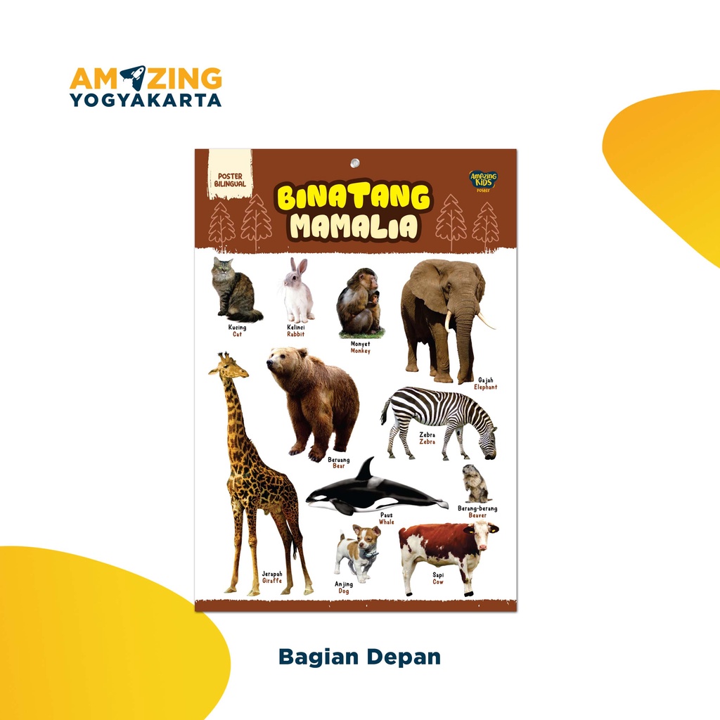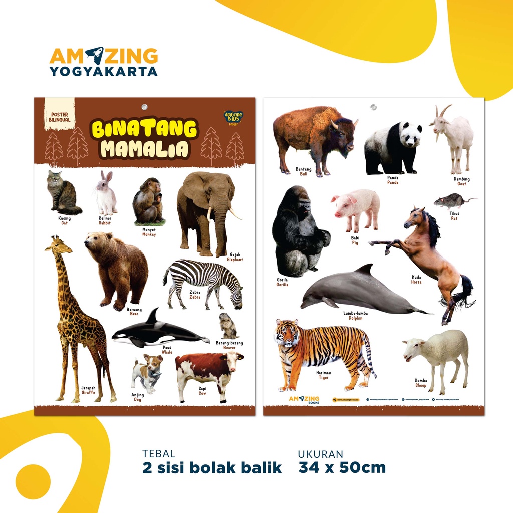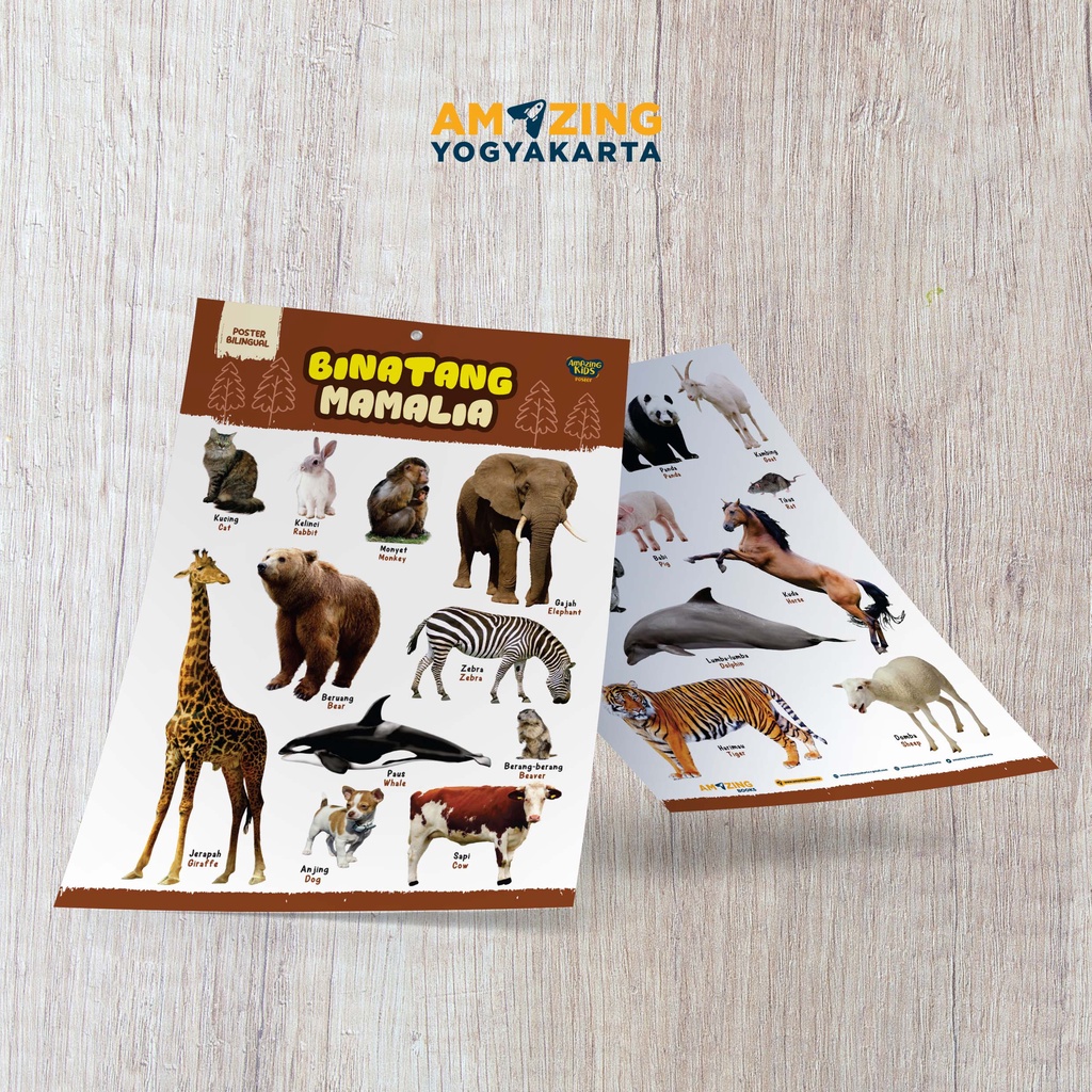 POSTER EDUKASI ANAK - Binatang Mamalia ( 2 in 1 ) - Bilingual