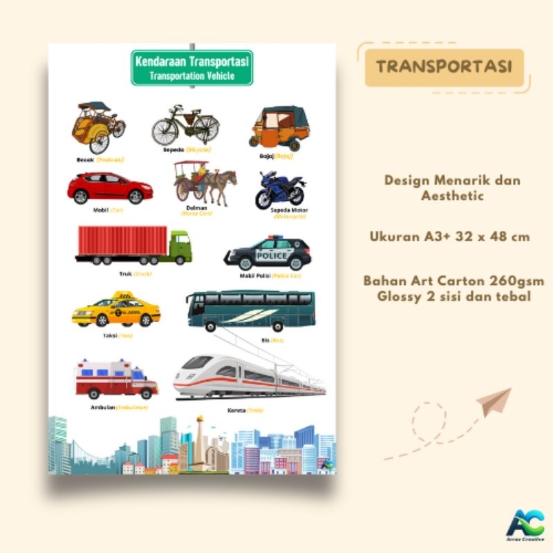 POSTER EDUKASI ANAK, Poster Untuk Belajar Anak, Art Carton 260gr A3+ Full Color