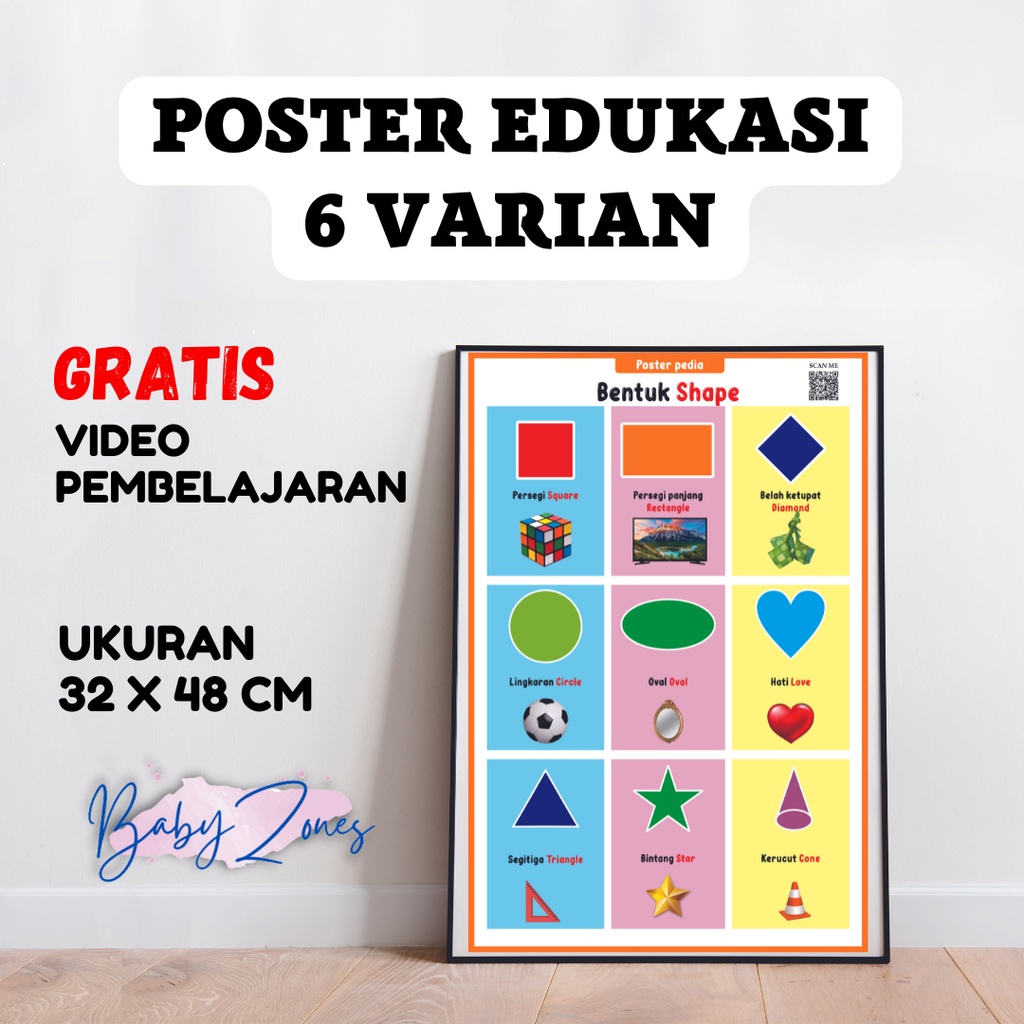 POSTER EDUKASI Pendidikan GRATIS VIDEO Belajar Anak Balita, Mainan Bayi Edukasi Poster Dinding Mainan Anak