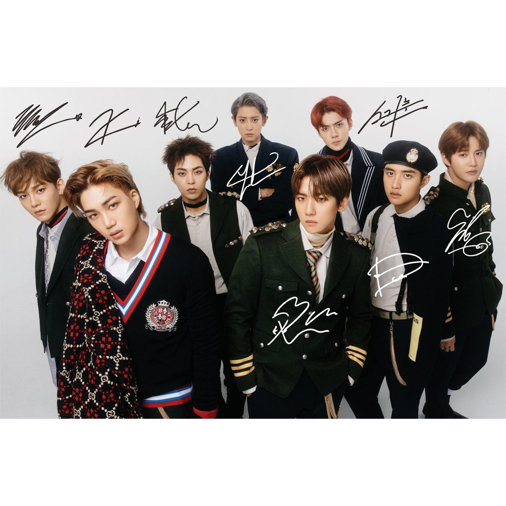 POSTER EXO GRUP DENGAN TANDA TANGAN POSTER KPOP EXO UKURAN A3+