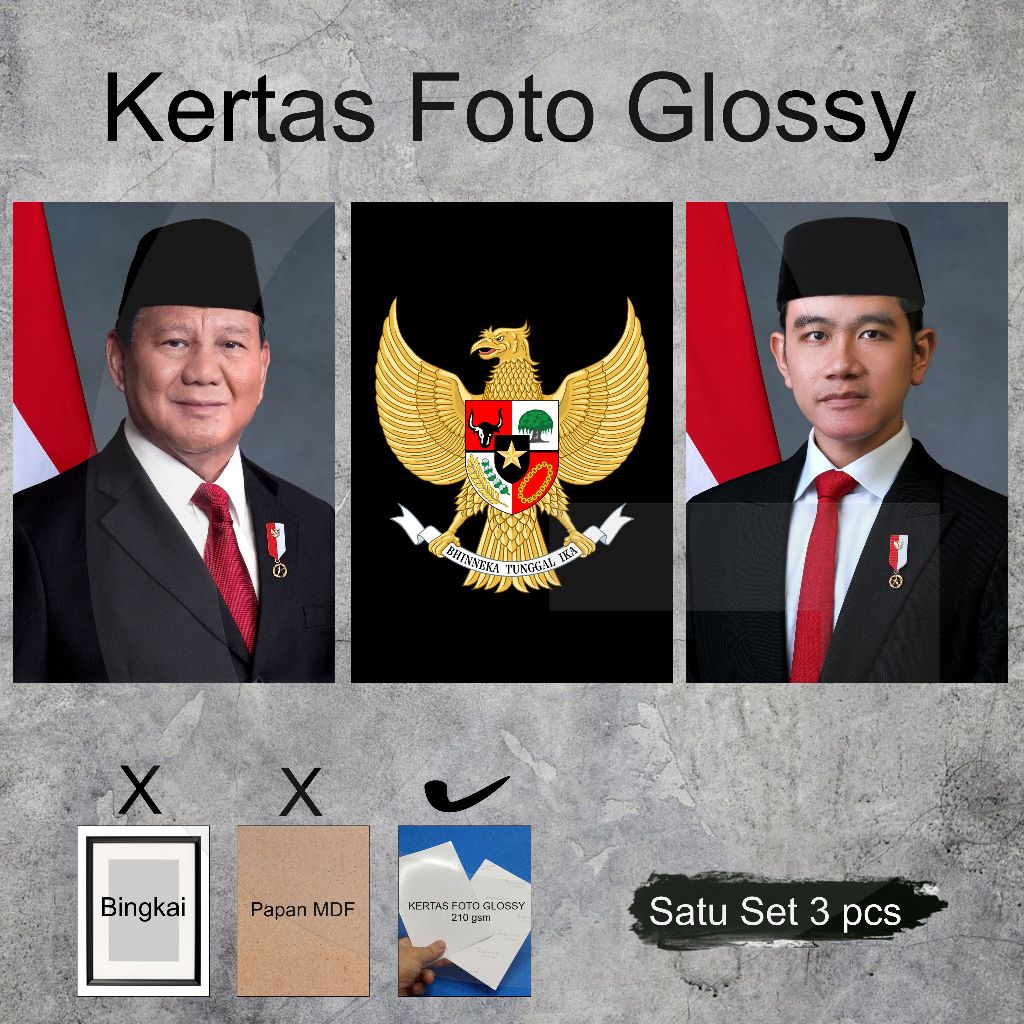 POSTER HIASAN DINDING FOTO PRESIDEN WAKIL PRESIDEN DAN GARUDA UK/12R PLUS PAPAN MDF