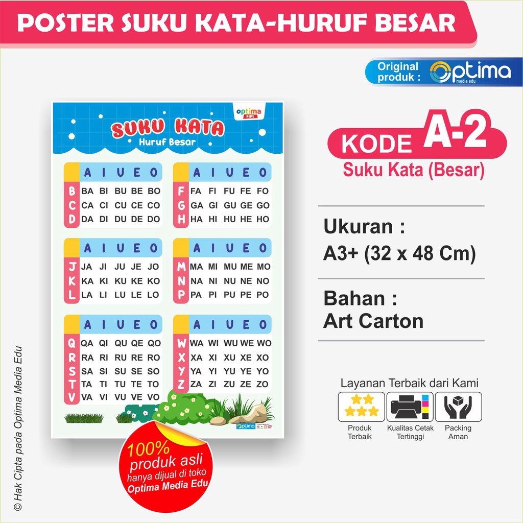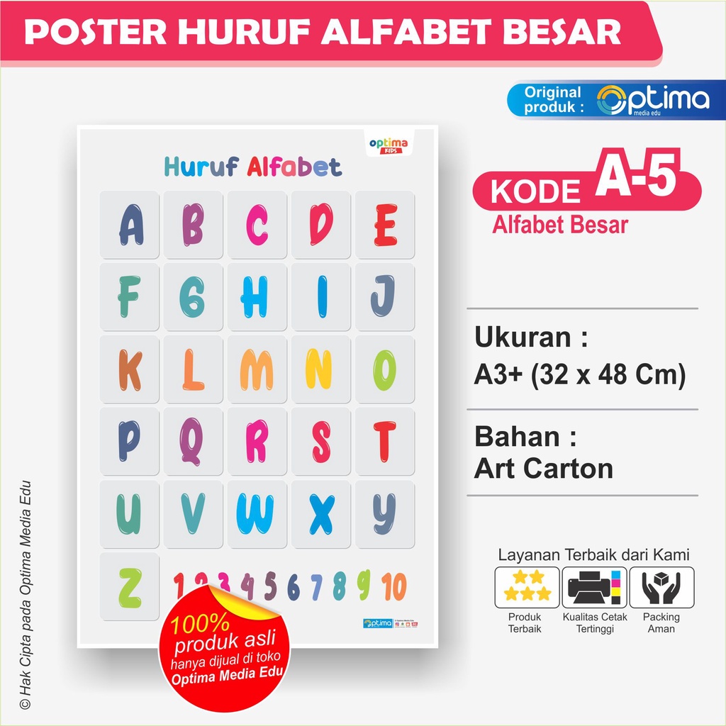 POSTER HURUF ABJAD/ALFABET BERGAMBAR, HURUF BESAR, HURUF KECIL, DAN ANGKA 1 - 100
