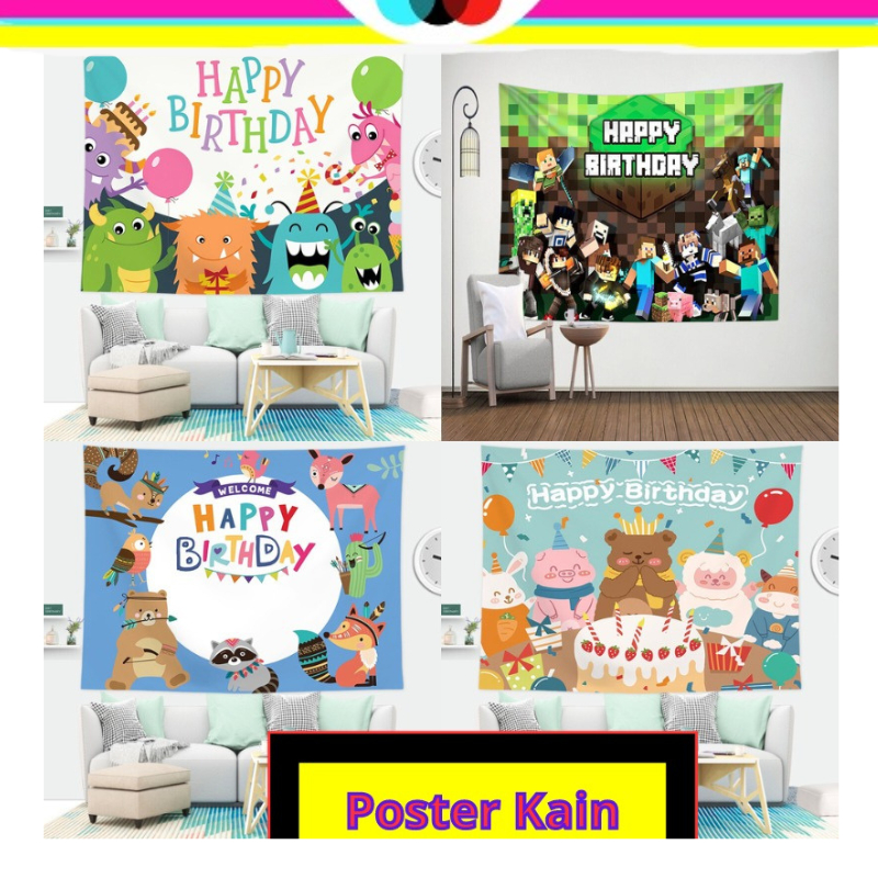 POSTER KAIN HIASAN PAJANGAN DINDING WALLPAPER DEKORASI RUMAH KADO BARANG UNIK ULTAH ULANG TAHUN HAPPY BIRTHDAY GAME MNICRAFT MINECRAFT ROBLOX DEKOR DECOR RUANG TAMU RUANG TIDUR ANAK ANAK MURAH