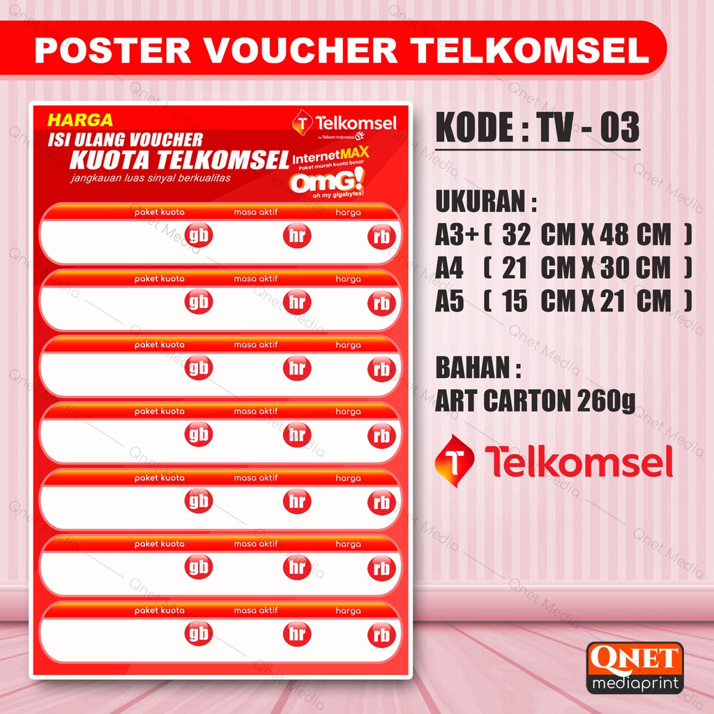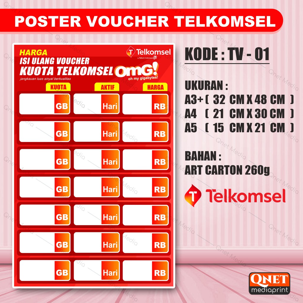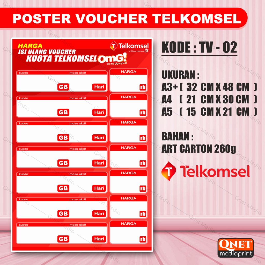 POSTER KONTER DAFTAR HARGA ISI ULANG VOUCHER SIMPATI + LAMINASI GLOSSY